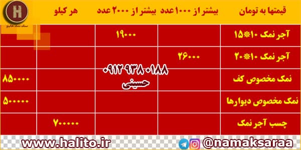 قیمت ساخت اتاق نمک به متریال به کار رفته بر میگردد لیست قیمت مصالح در جدول زیر آورده شده است و شما به راحتی میتوانید تصمیم بگیرید از هر کدام به چه مقدار استفاده کنید.